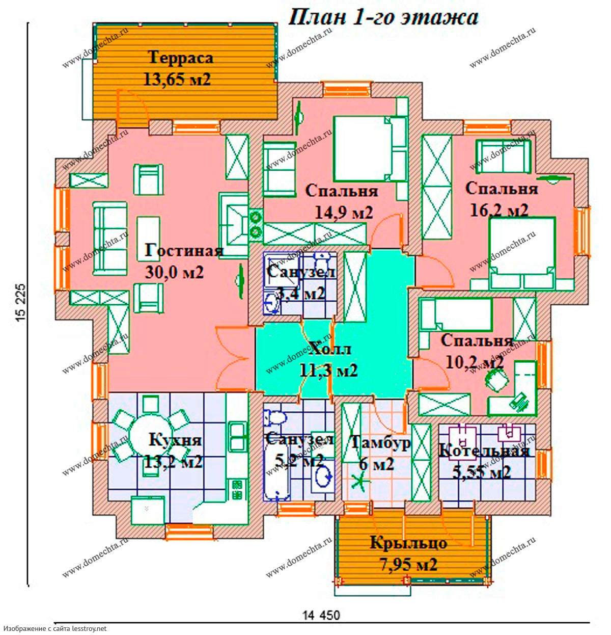 Проект одноэтажного дома Одноэтажный дом из газоблоков ГБ-138