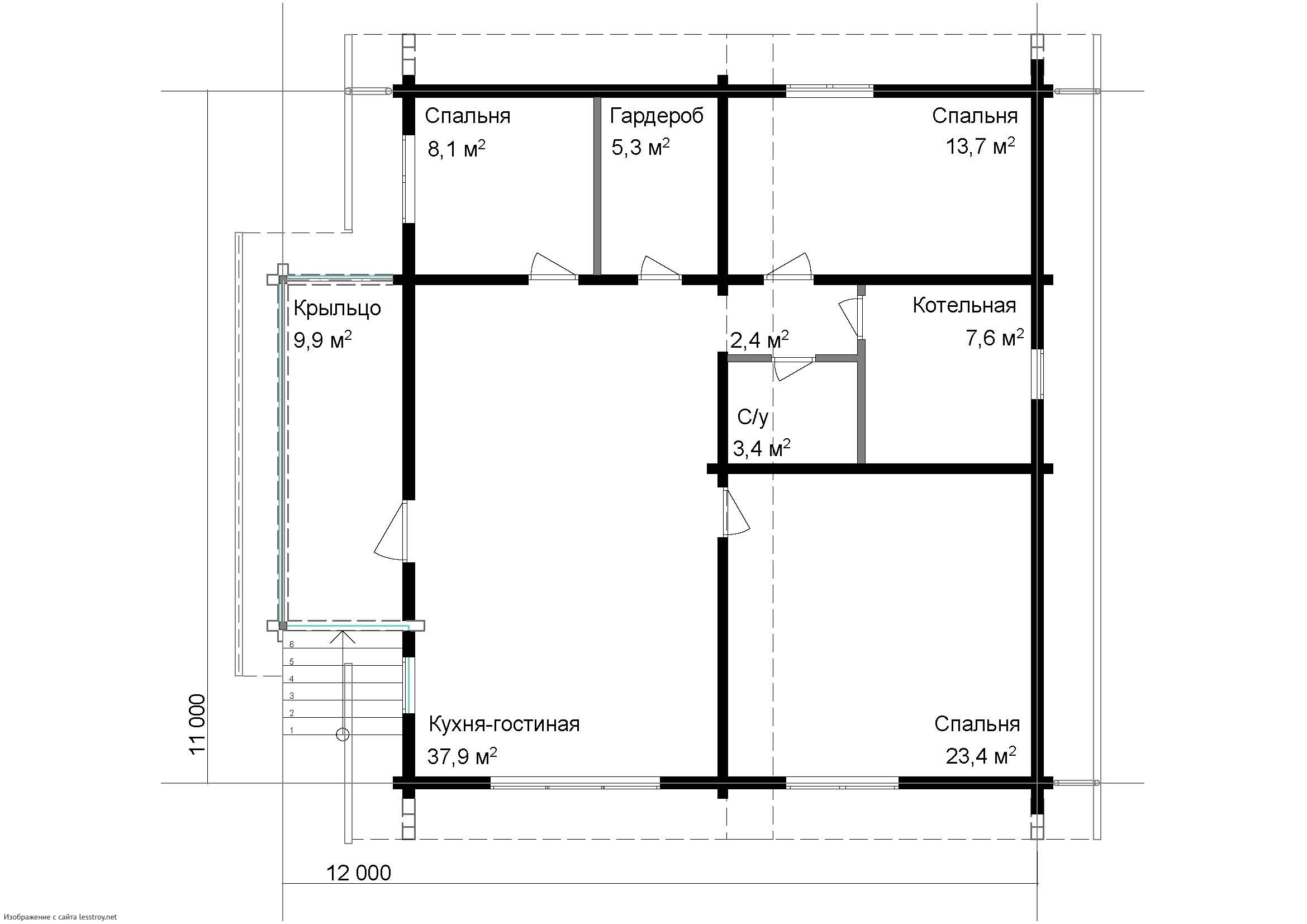 Проект одноэтажного дома Одноэтажный дом из клееного бруса Вьюга-111