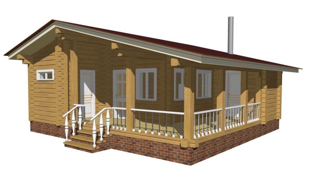 Проект одноэтажного дома Одноэтажный дом из профилированного бруса 6x6 м. с террасой
