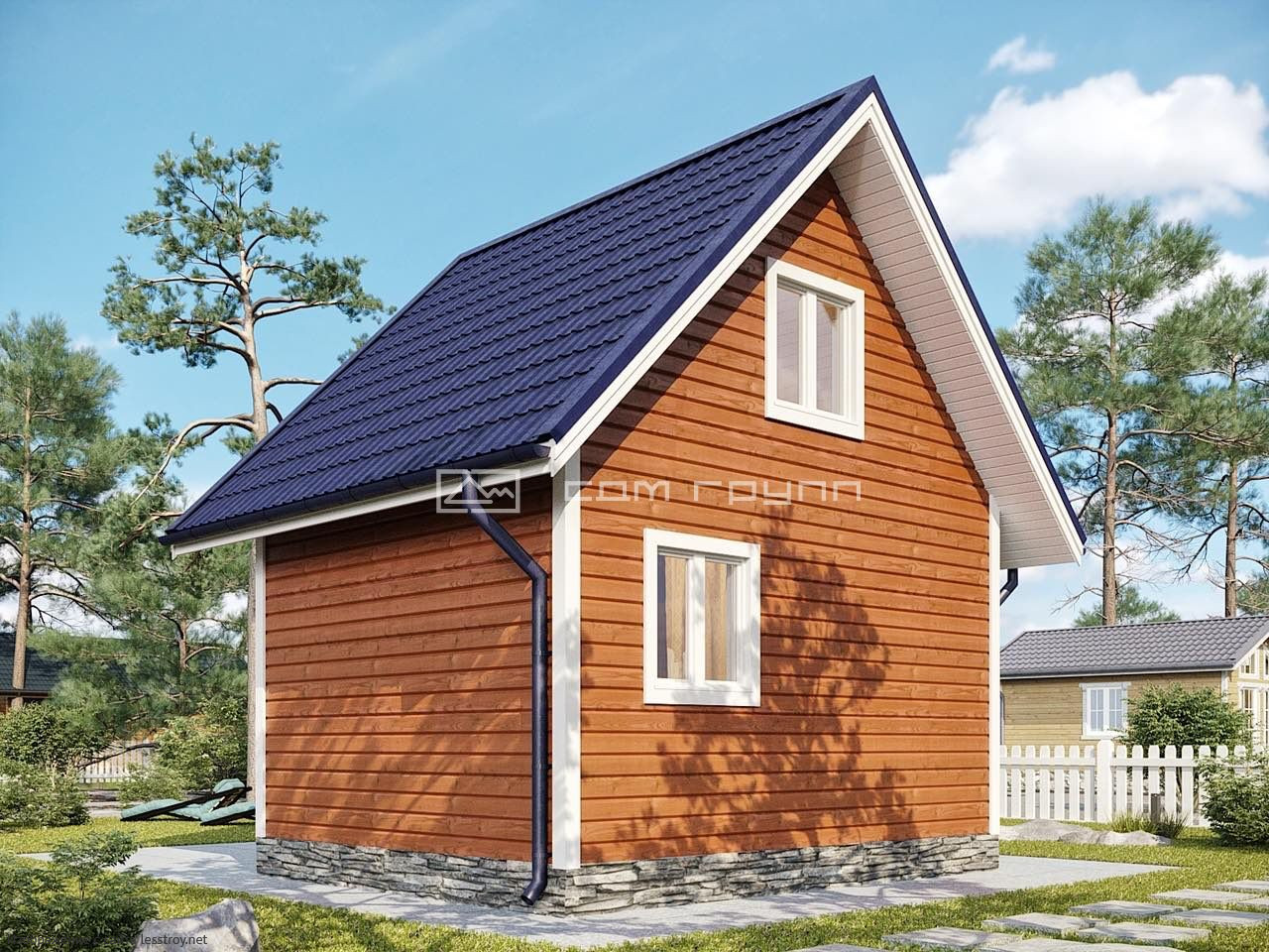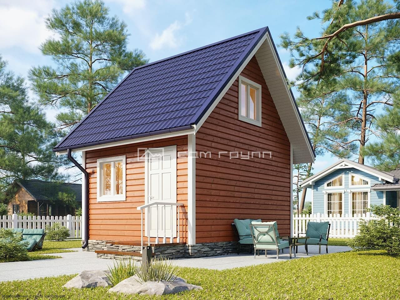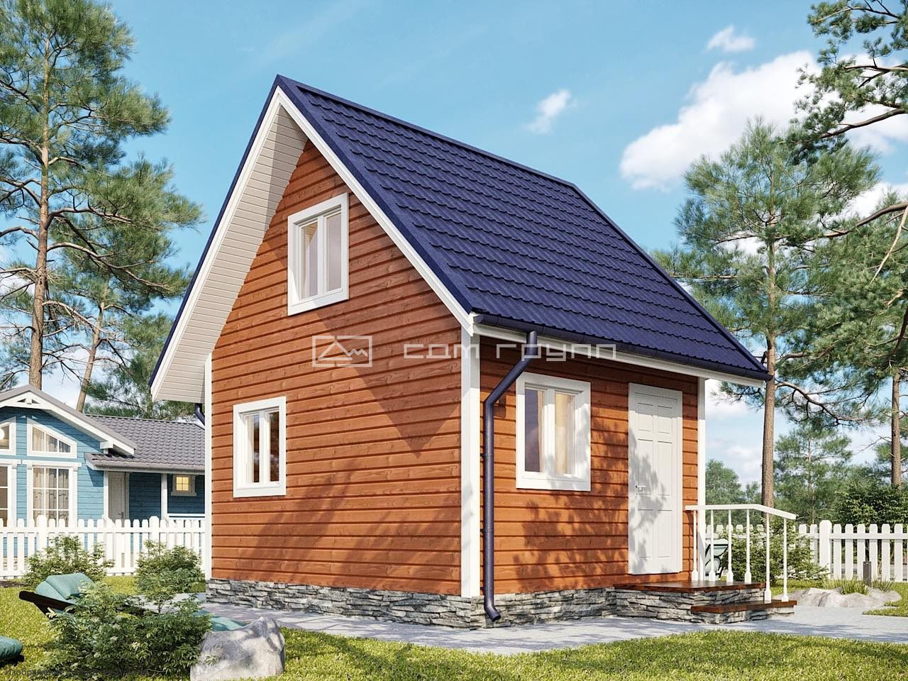 Миниатюрный каркасный дом площадью 31 м² с одной спальней подходит для дачного отдыха. Металлочерепица и мансарда добавляют ему уюта.Характеристики