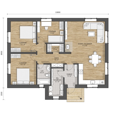 Проект одноэтажного дома одноэтажный 90 м2