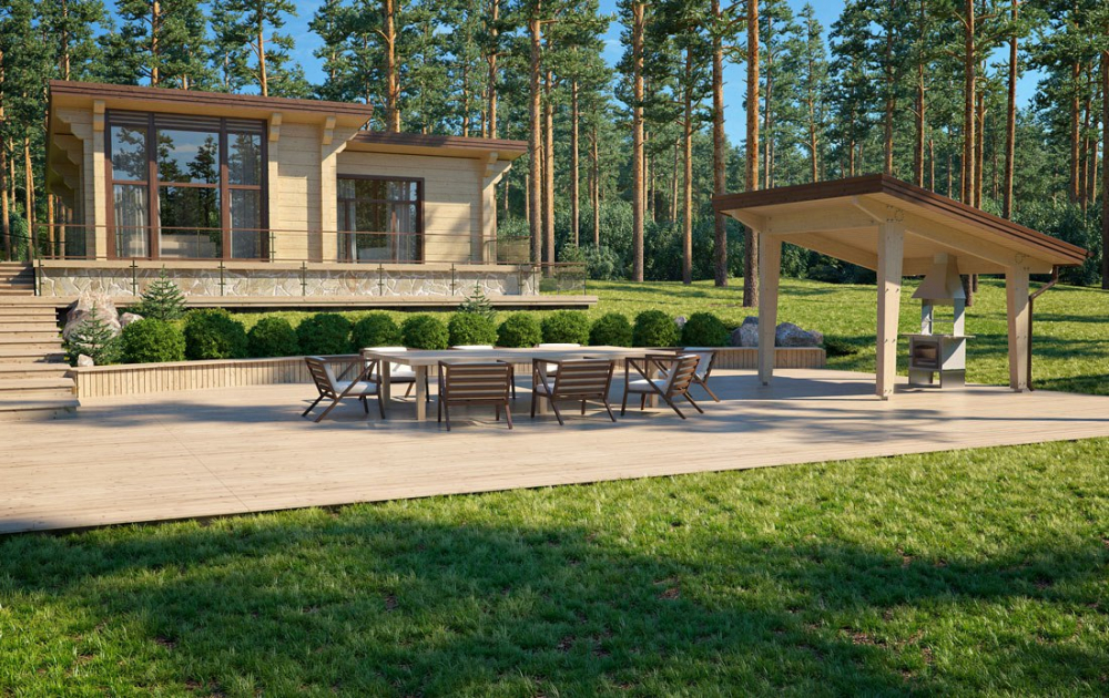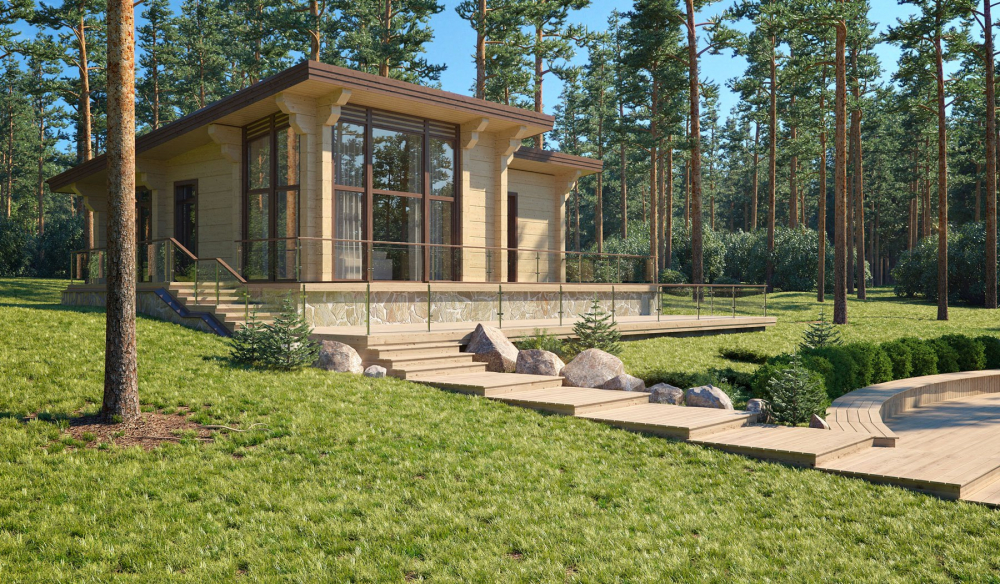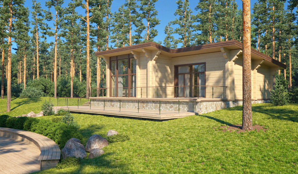Интерьеры с подогревом стен в ванной. Уют и простота воплощаются в 129 м² комфортного пространства. Одноэтажная удобная планировка разграничивает спальные и дневные помещения. Количество спален — 1, делая планировку гибкой. В качестве кровли использована черепица — материал, проверенный временем.Характеристики