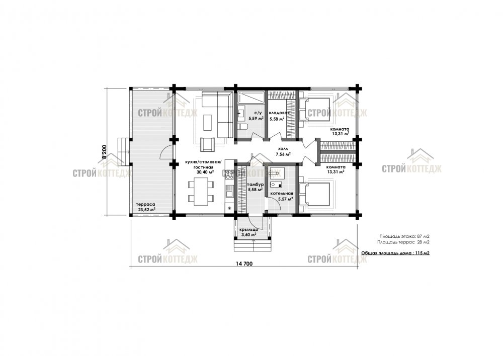 - Жилая площадь: 87 м2