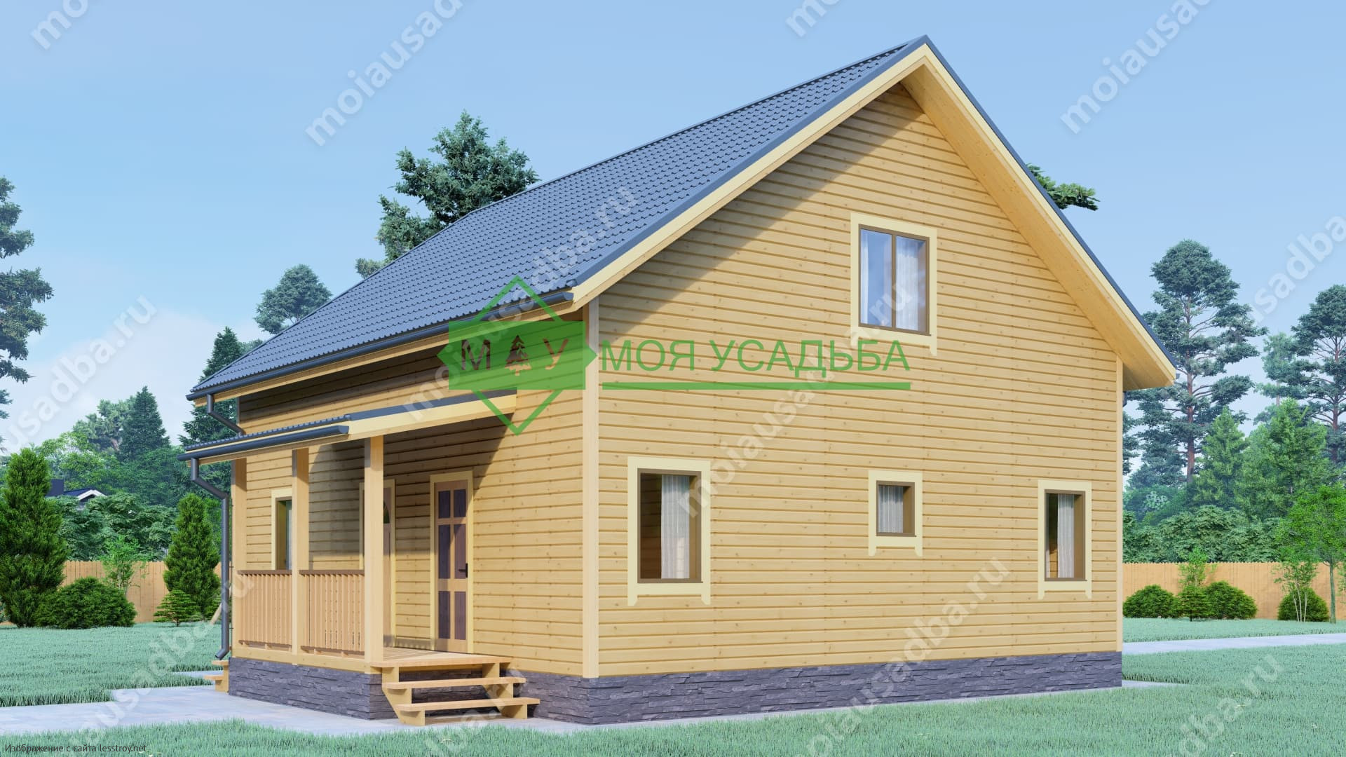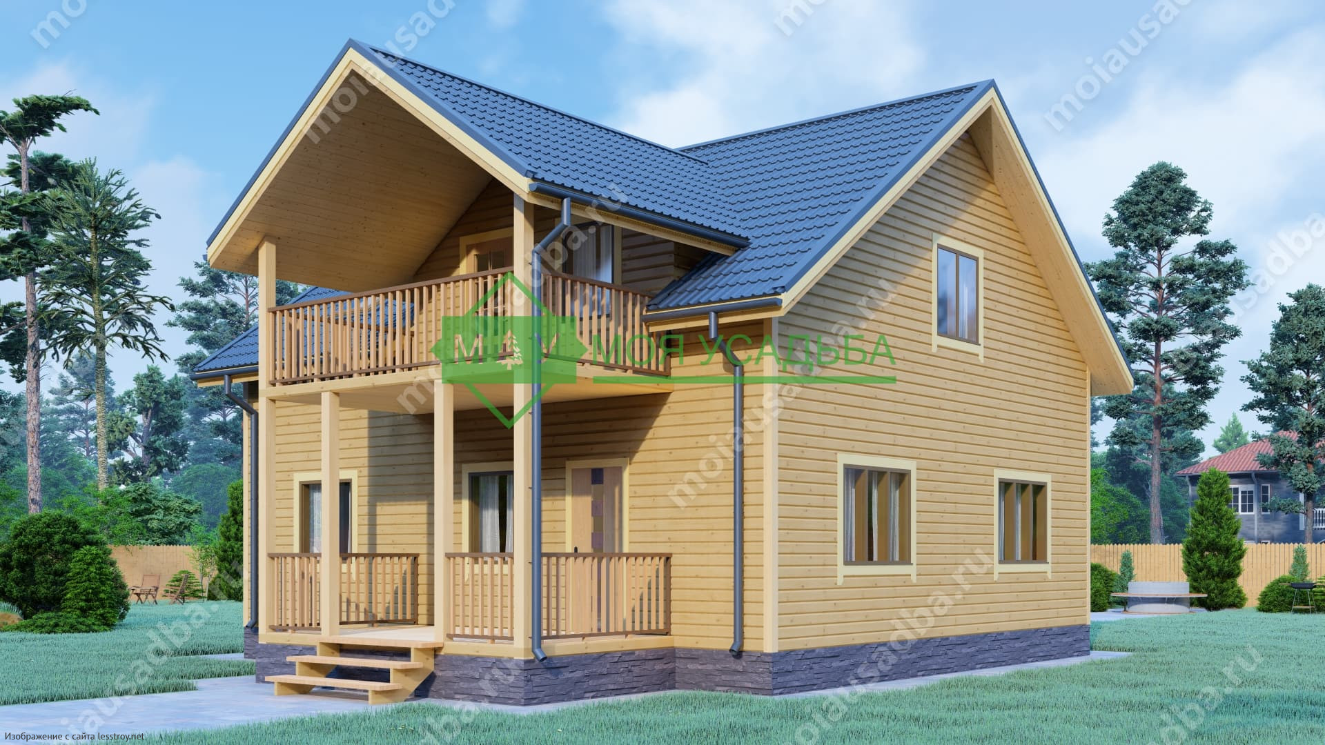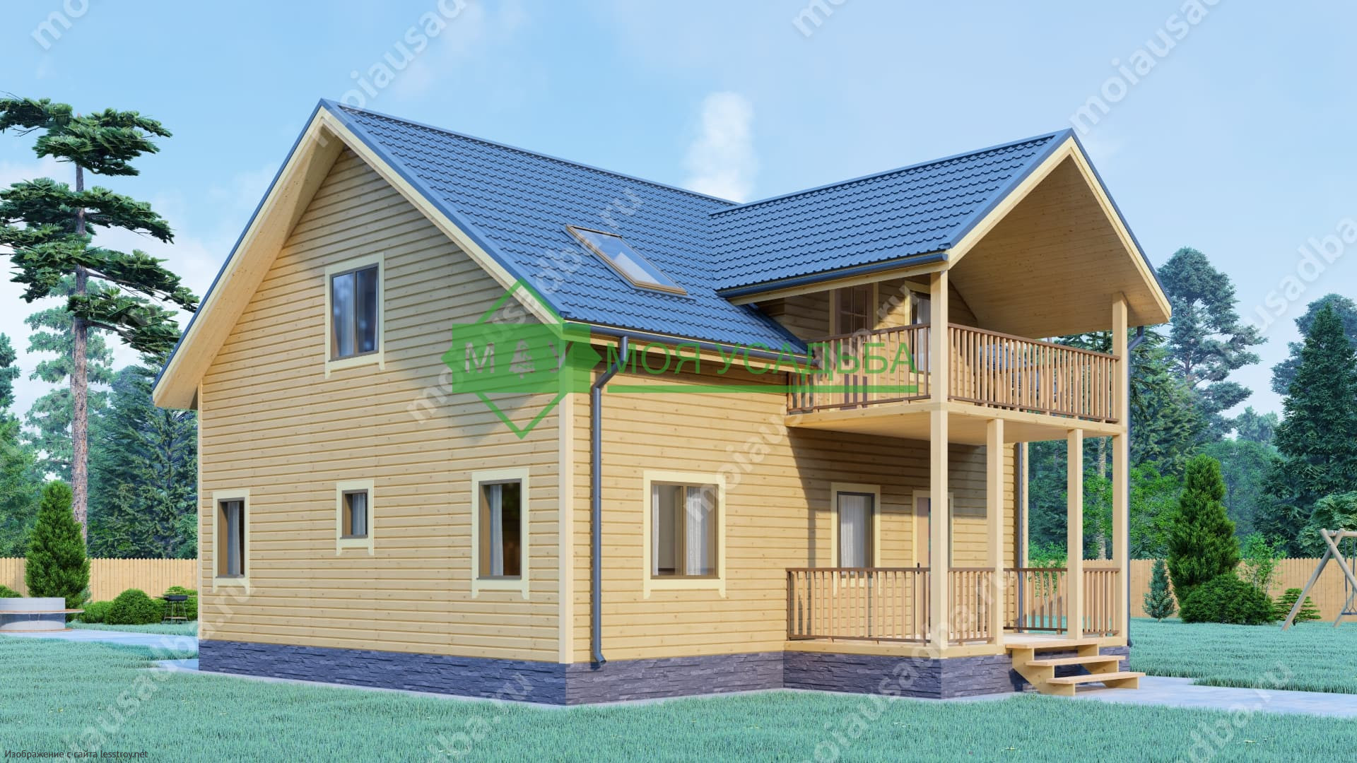 Проект двухэтажного дома Полутораэтажный дом из бруса 9х10 с балконом ДБ-9