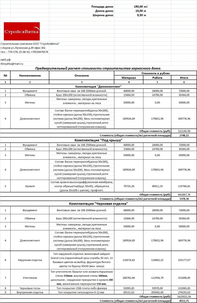 Отправьте свои контакты и мы расчитаем вам смету