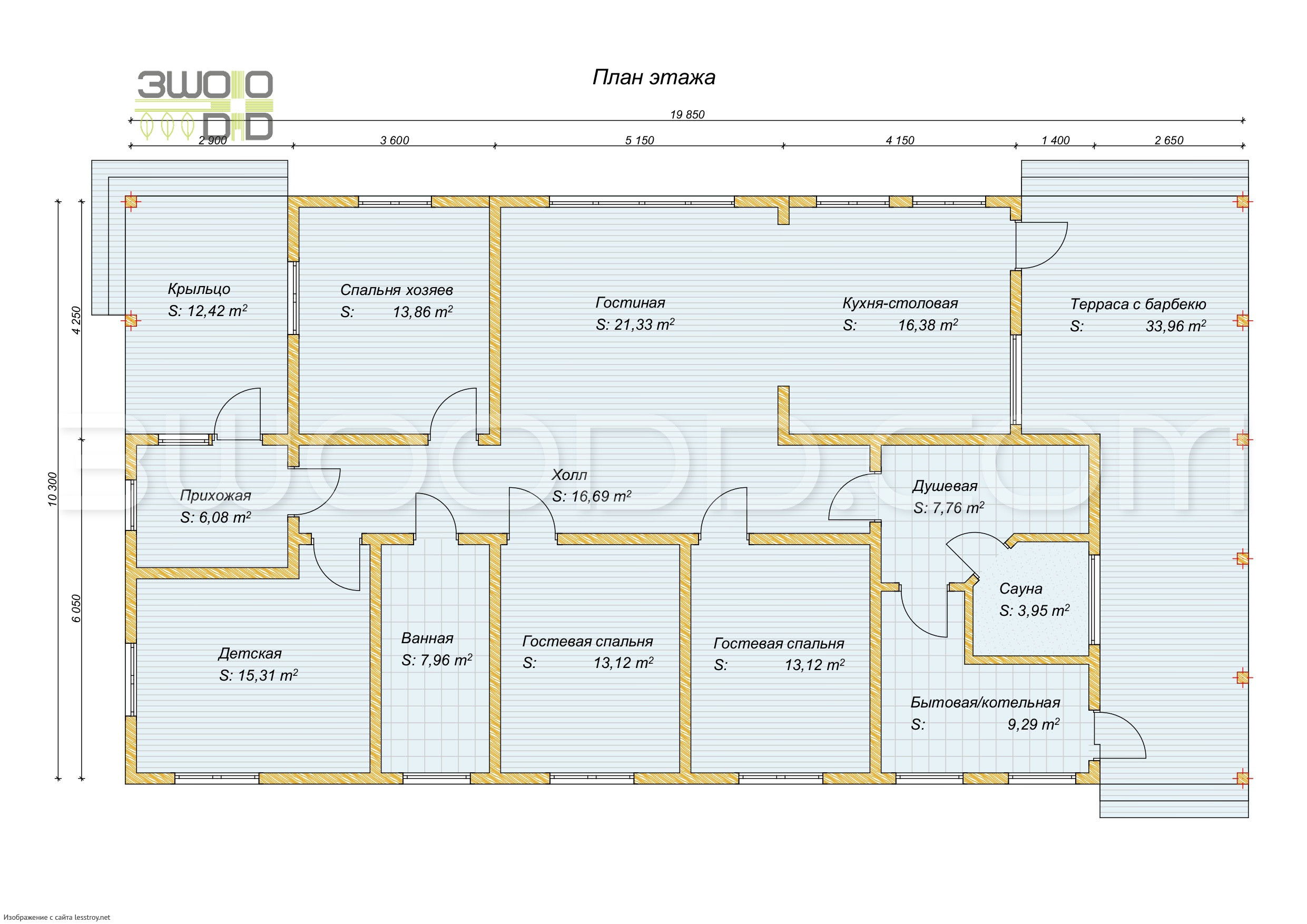 Проект одноэтажного дома Изумруд, под ключ, ламинат, двери Экошпон, отделка Hauberk, коммуникации, сантехника.