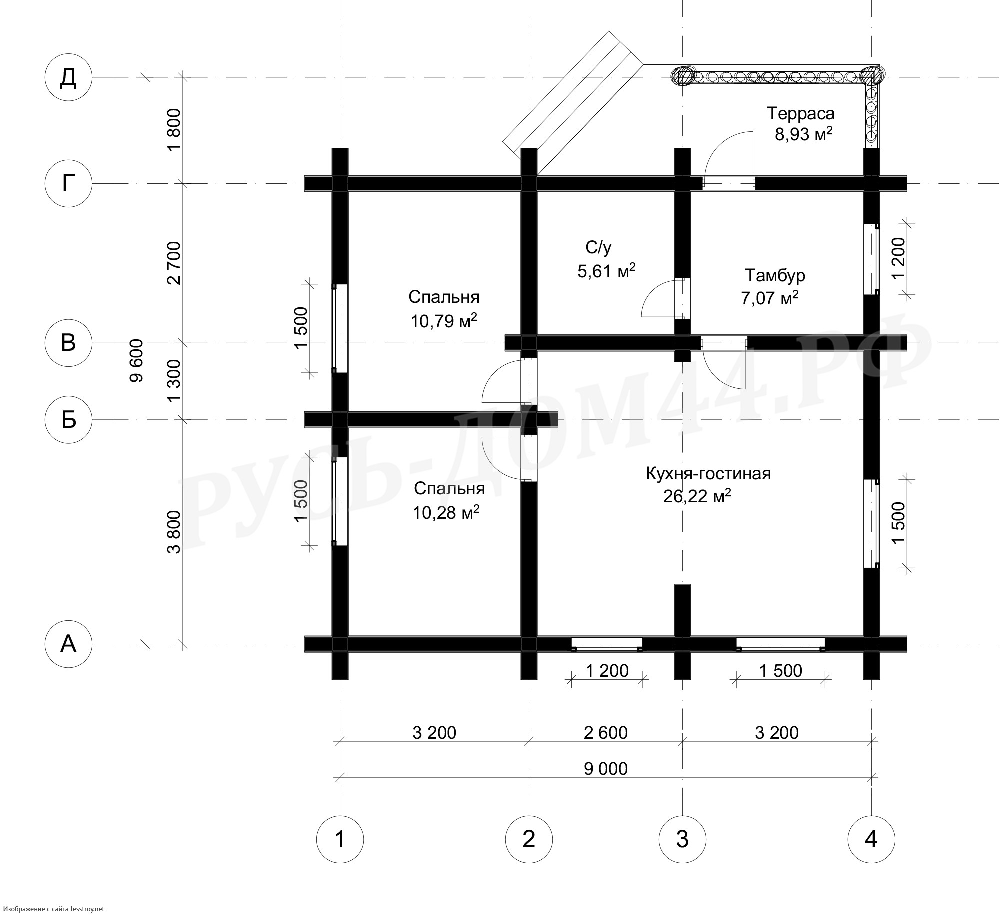 Проект одноэтажного дома Проект ДБ №14 9,6х9