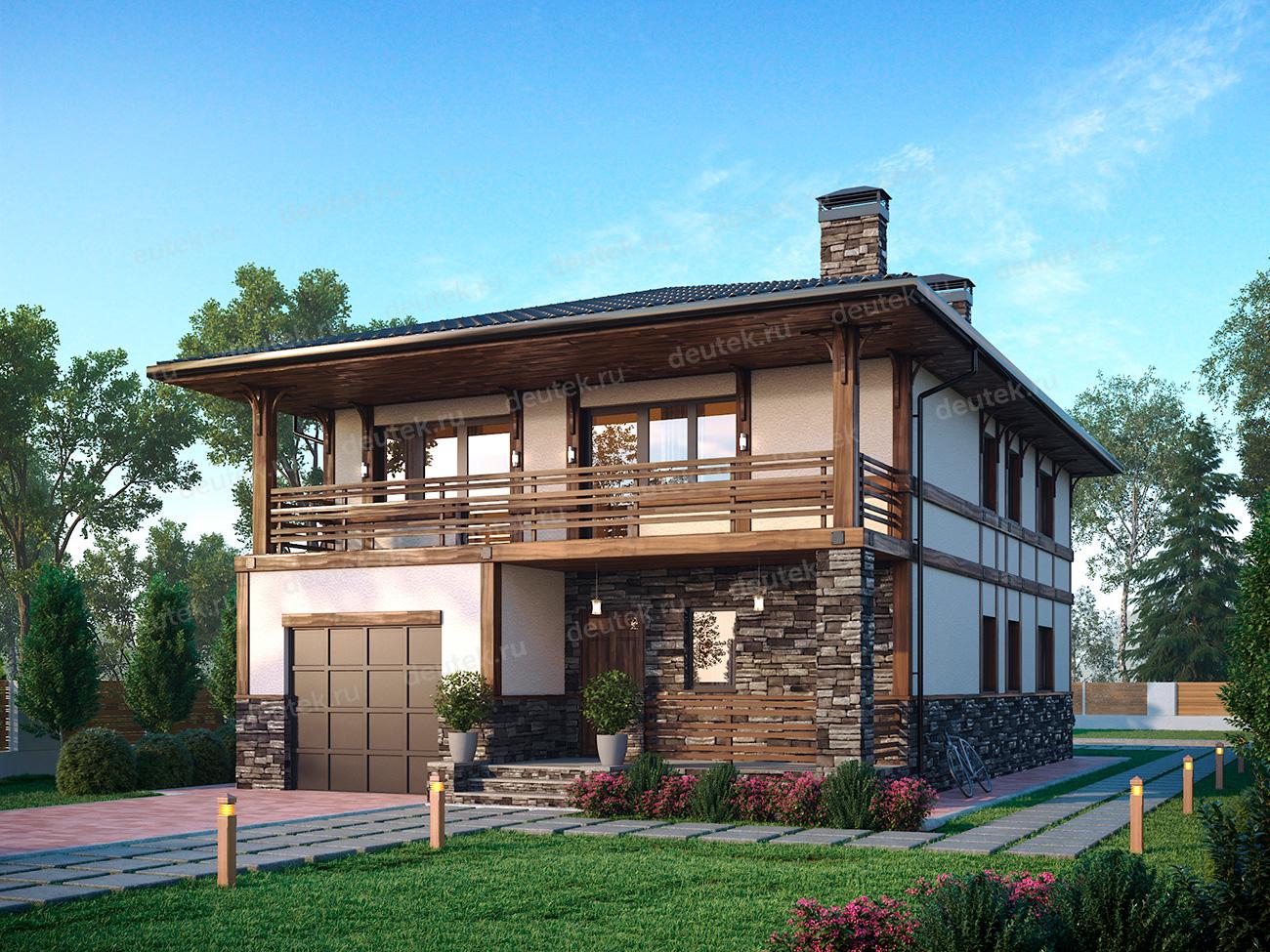 Проект двухэтажного дома Проект дома 8 на 13 с гаражом из пеноблоков DT3002