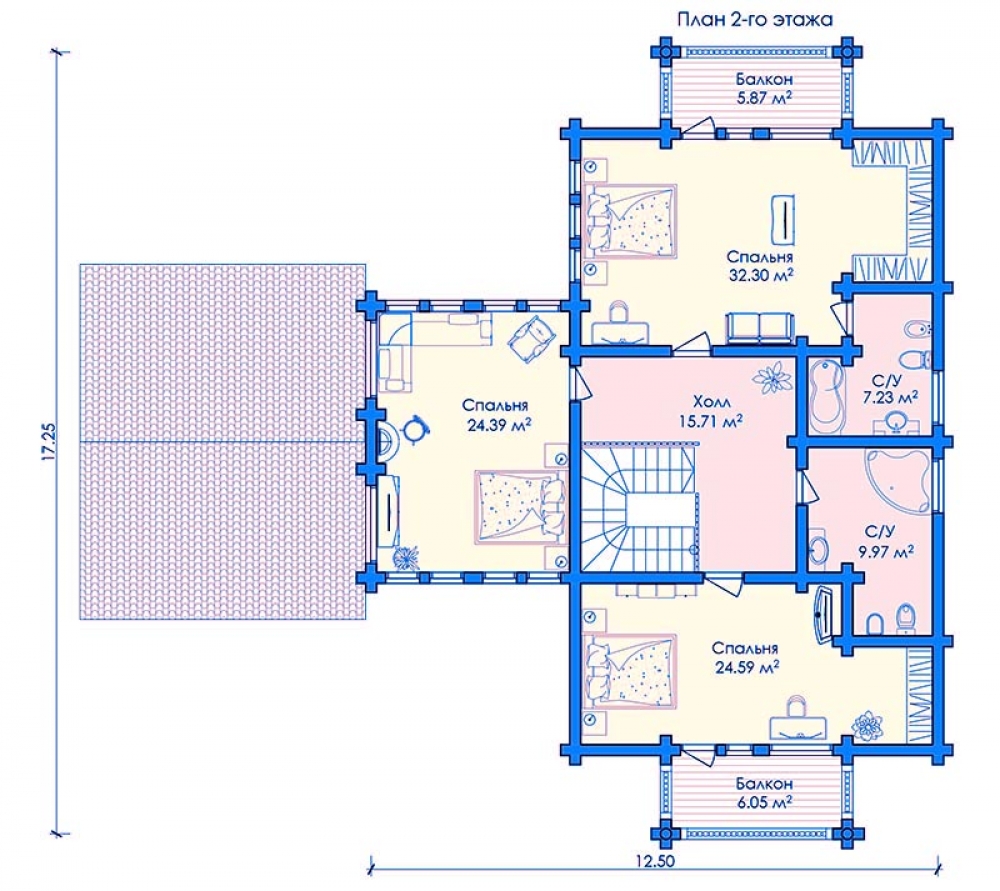 Проект двухэтажного дома Дом из оцилиндрованного бревна ОЦБ-24