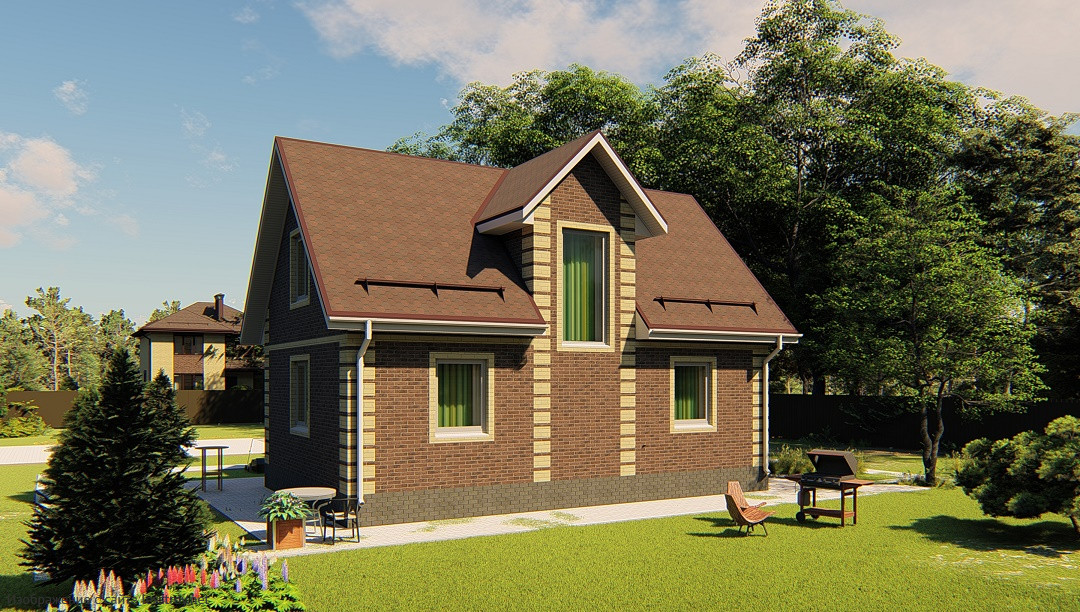 Современный дом с безупречной планировкой, где каждая деталь создаёт уют и гармонию, делая вашу жизнь по-настоящему комфортной. Простор и комфорт объединяются в 110 м². Кирпича делает дом надёжным при любой погоде. Двухэтажная рациональная планировка обеспечивает практичное распределение комнат. В качестве кровли использована битумная черепица — материал, проверенный временем.Характеристики