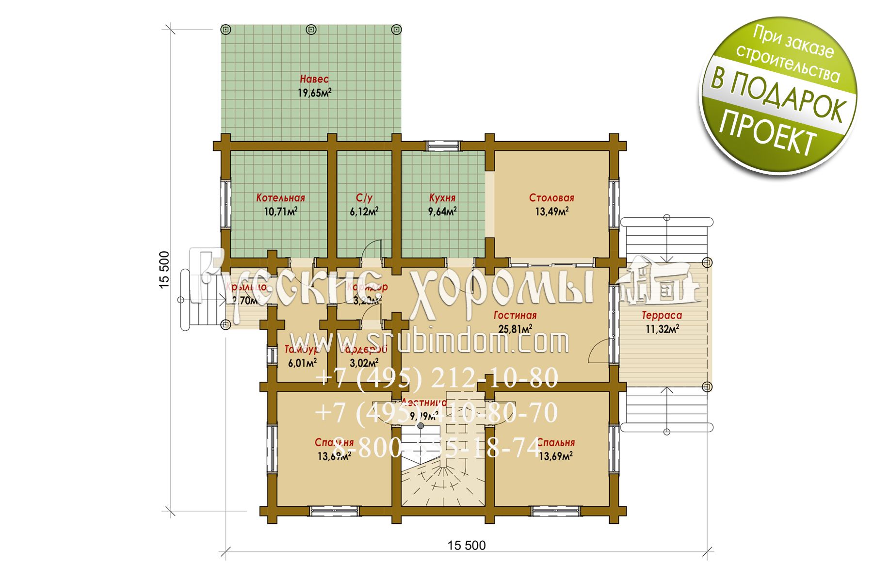 Проект двухэтажного дома Проект дома из бревна ручной рубки САЛЬВАДОР, диаметр 300 мм