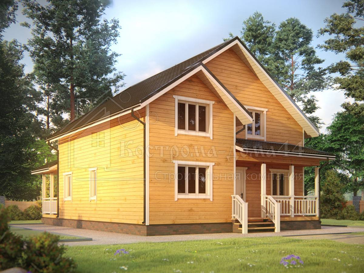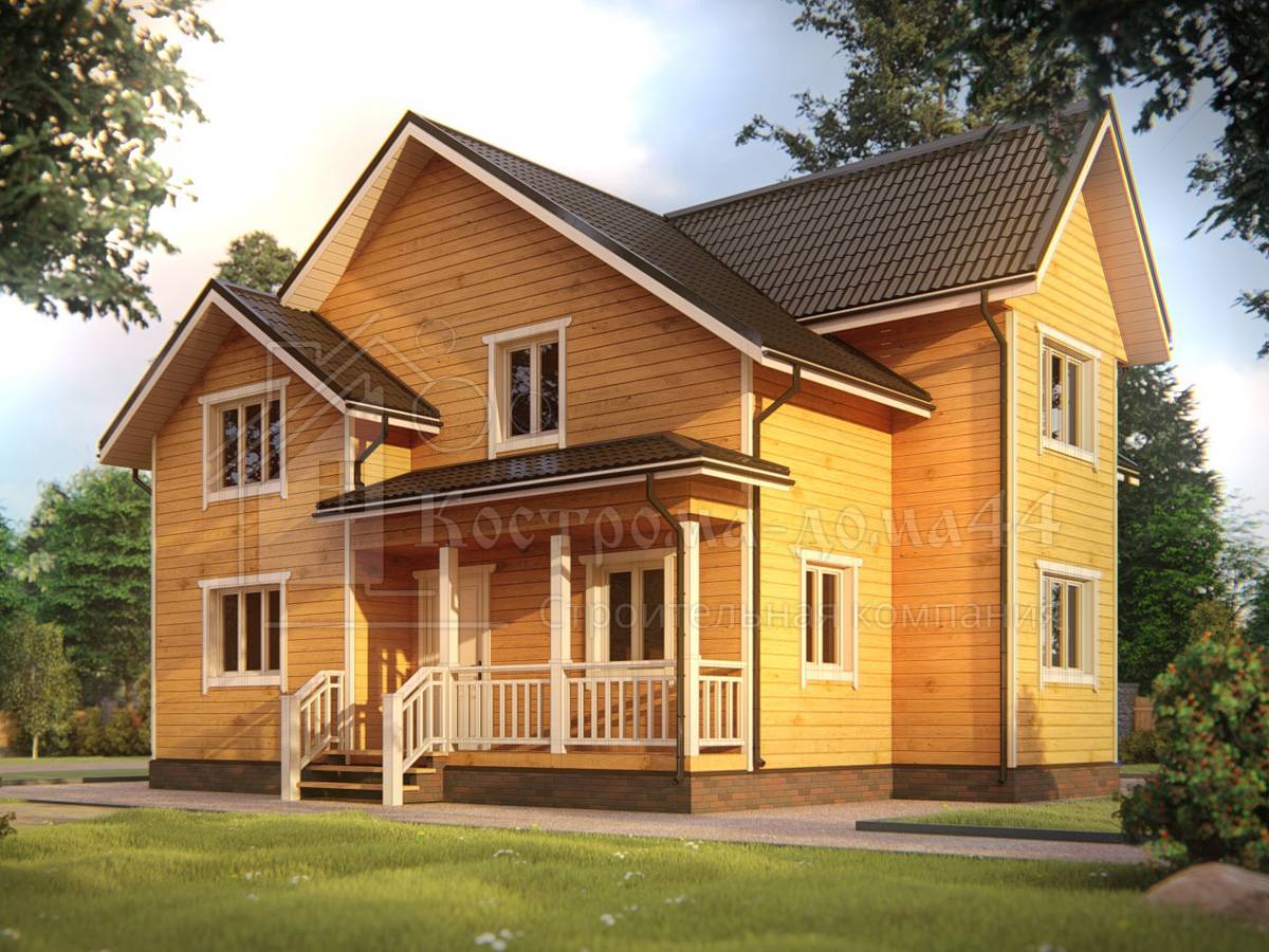Проект двухэтажного дома Дом из клееного бруса с террасой и балконом. Проект Светово.