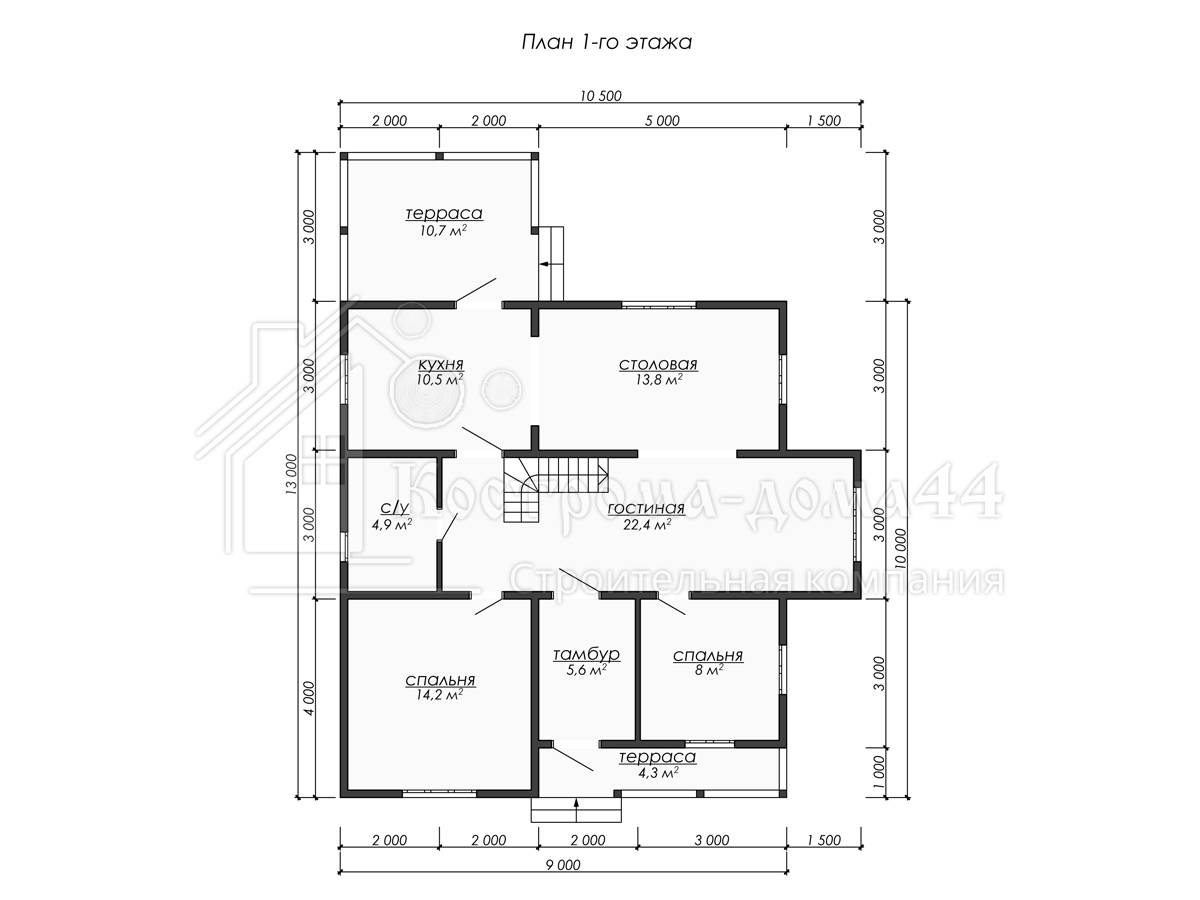 Проект двухэтажного дома Проект дома из бруса 13x10,5 (ДБ-73)