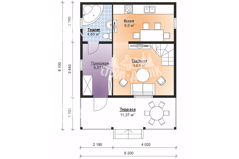 Интерьеры, в которых вы не ударяетесь о выступы Дом вмещает 80 м² заботливо оформленного пространства. Двухэтажная просторная планировка организует пространство максимально эффективно. Выбор Бруса обусловлен его теплоизоляционными свойствами. Наличие 2 спальни удовлетворит запросы семьи с детьми.Характеристики