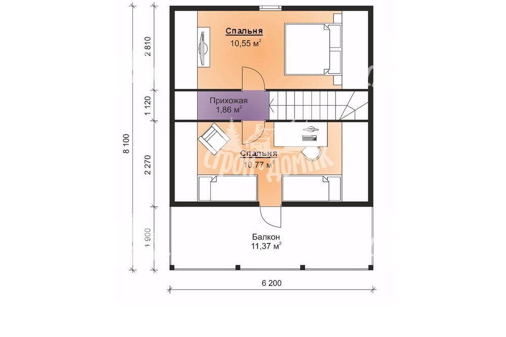 Проект двухэтажного дома Проект дома из бруса 6х8 с мансардой