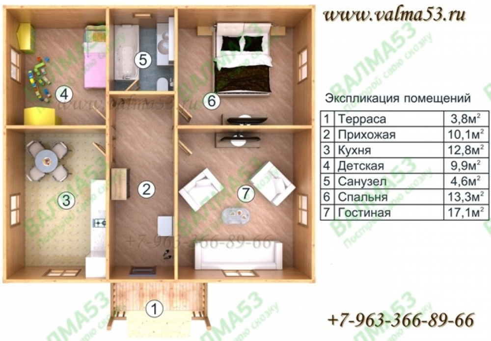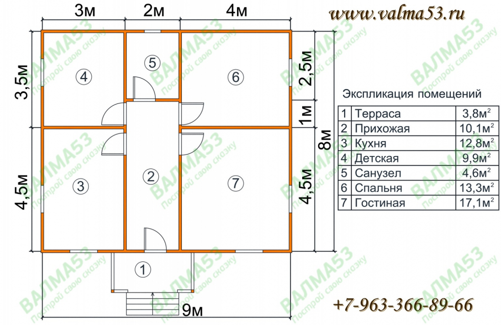 Проект одноэтажного дома Проект дома из бруса 9х8 - ОПУШКА