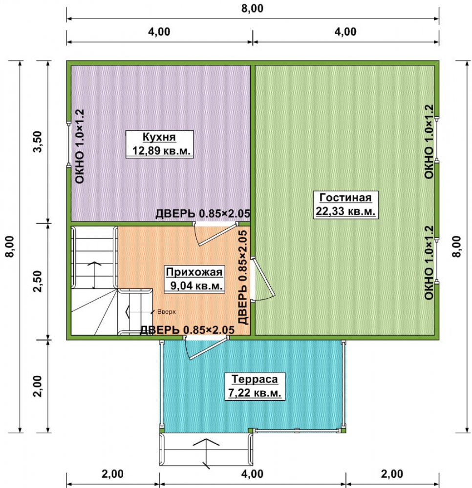 Проект двухэтажного дома Проект дома из бруса ДД-10 (8х8)