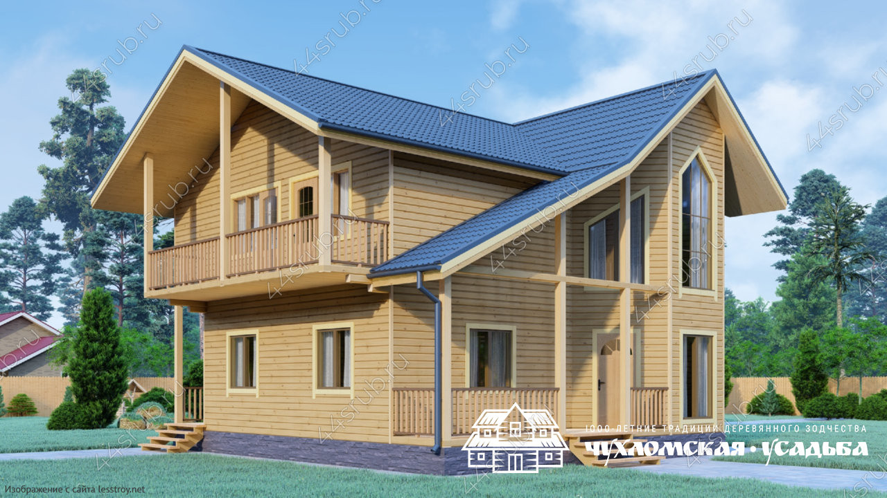 Проект двухэтажного дома Проект дома из бруса со вторым светом, с балконами, террасой и двумя входами Депардье