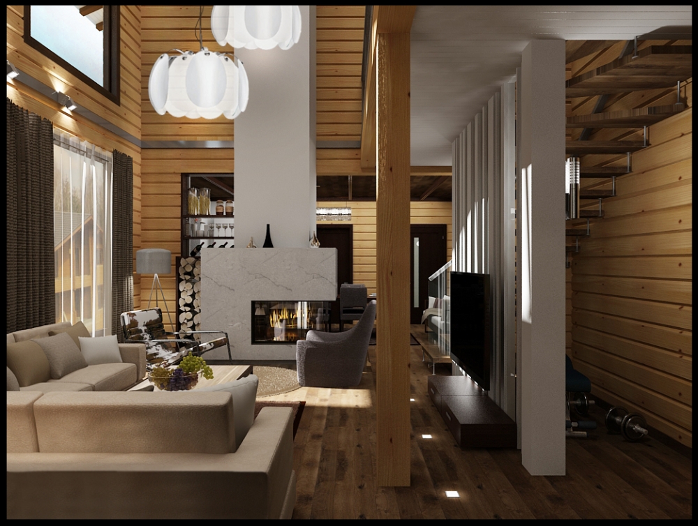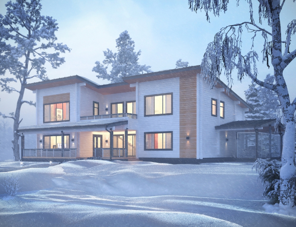 Архитектура здания — это манифест, а интерьеры — личный дневник семьи.Интерьер выстраивается вокруг 118 м² уюта и свободы. Выбор бруса обусловлен его теплоизоляционными свойствами. Рубероид придаёт дому выразительность и надёжность. Двухэтажная рациональная планировка обеспечивает комфортную навигацию внутри дома.Характеристики