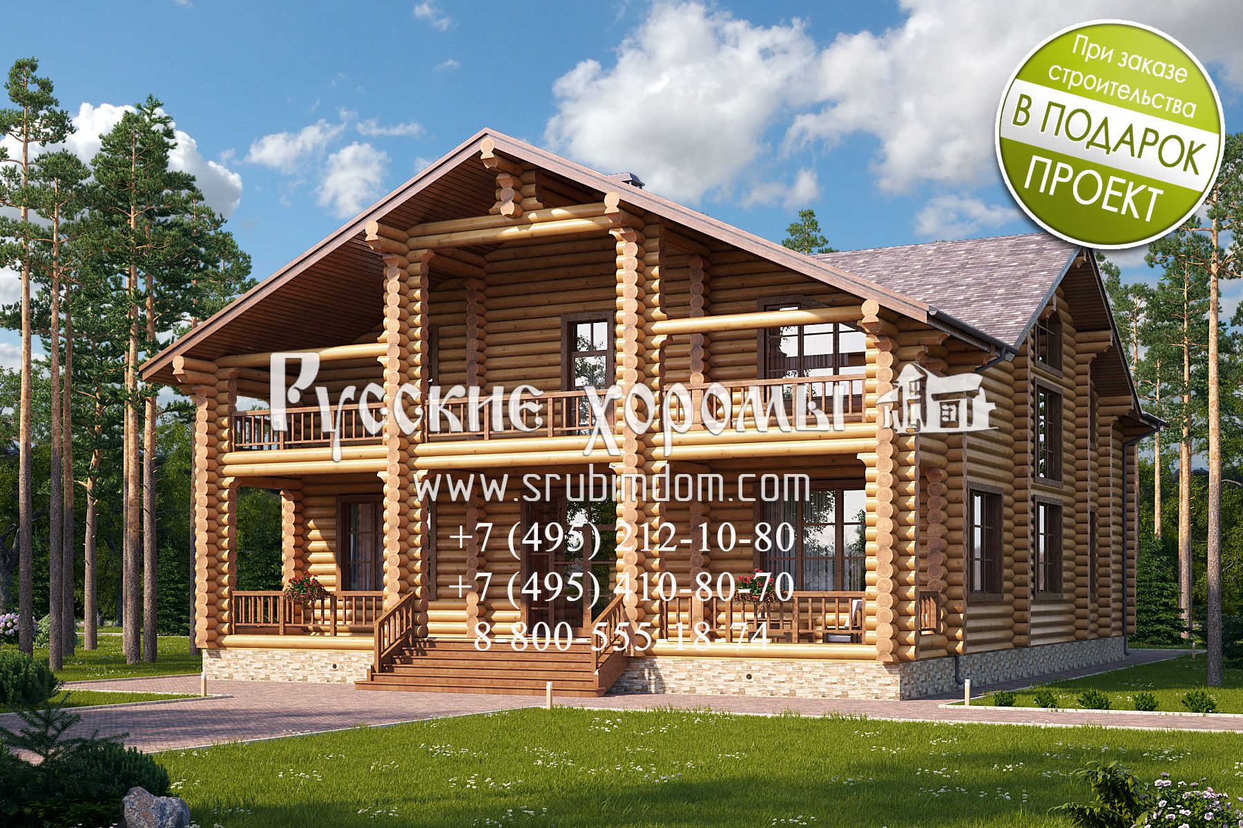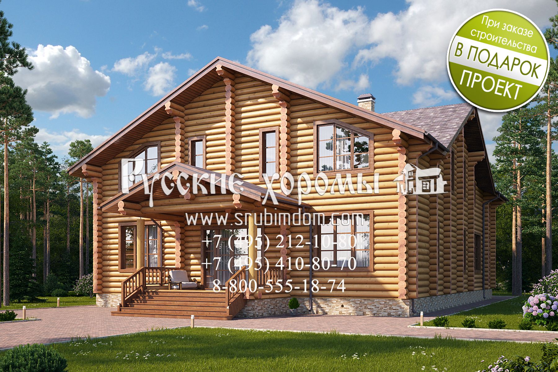 Проект двухэтажного дома Проект дома из оцилиндрованного бревна ОСКАР, диаметр 320 мм
