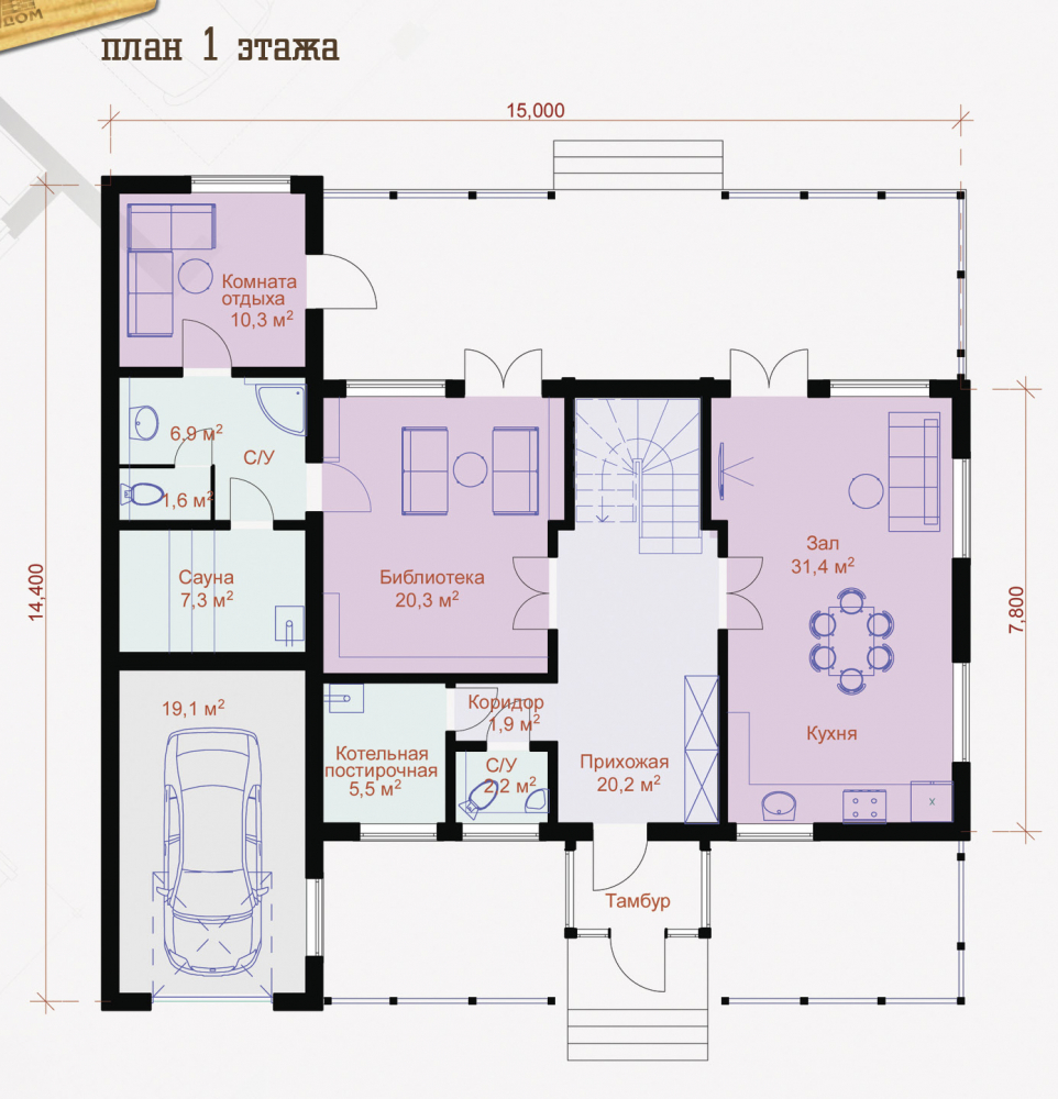 Проект двухэтажного дома ПРОЕКТ ДОМА ИЗ ПРОФ.БРУСА 15 НА 7,8