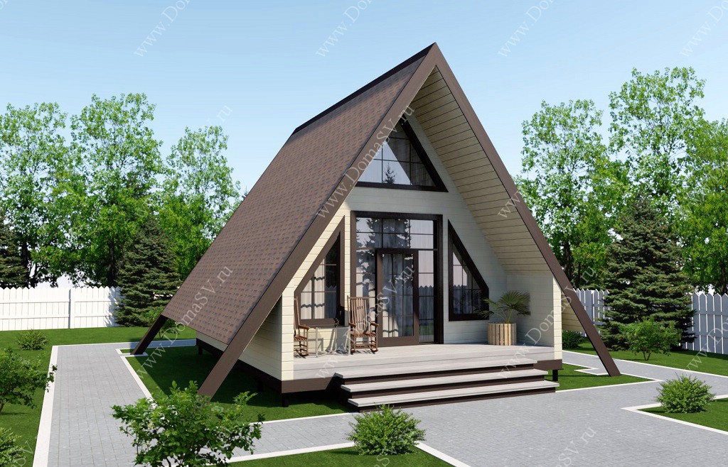- Стиль, разновидность: Дома в стиле A-frame (шалаш)