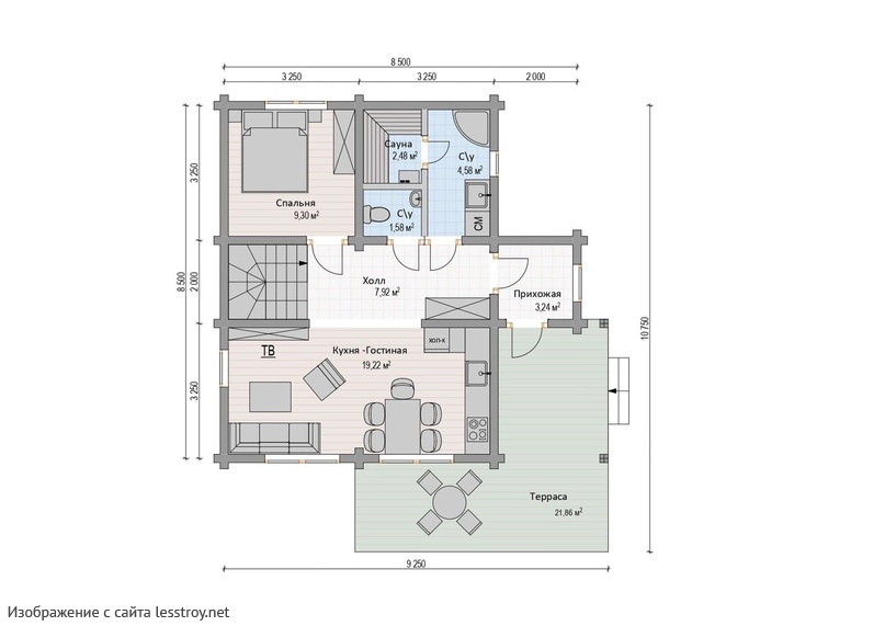 В этом решении нет ничего лишнего — только комфорт и продуманность.Дом с 72 м² — отличное начало для загородной жизни. Проект включает 1 спальня — удобно для семьи. профнастил придаёт дому выразительность и надёжность. Выбор бруса обусловлен его теплоизоляционными свойствами.Характеристики