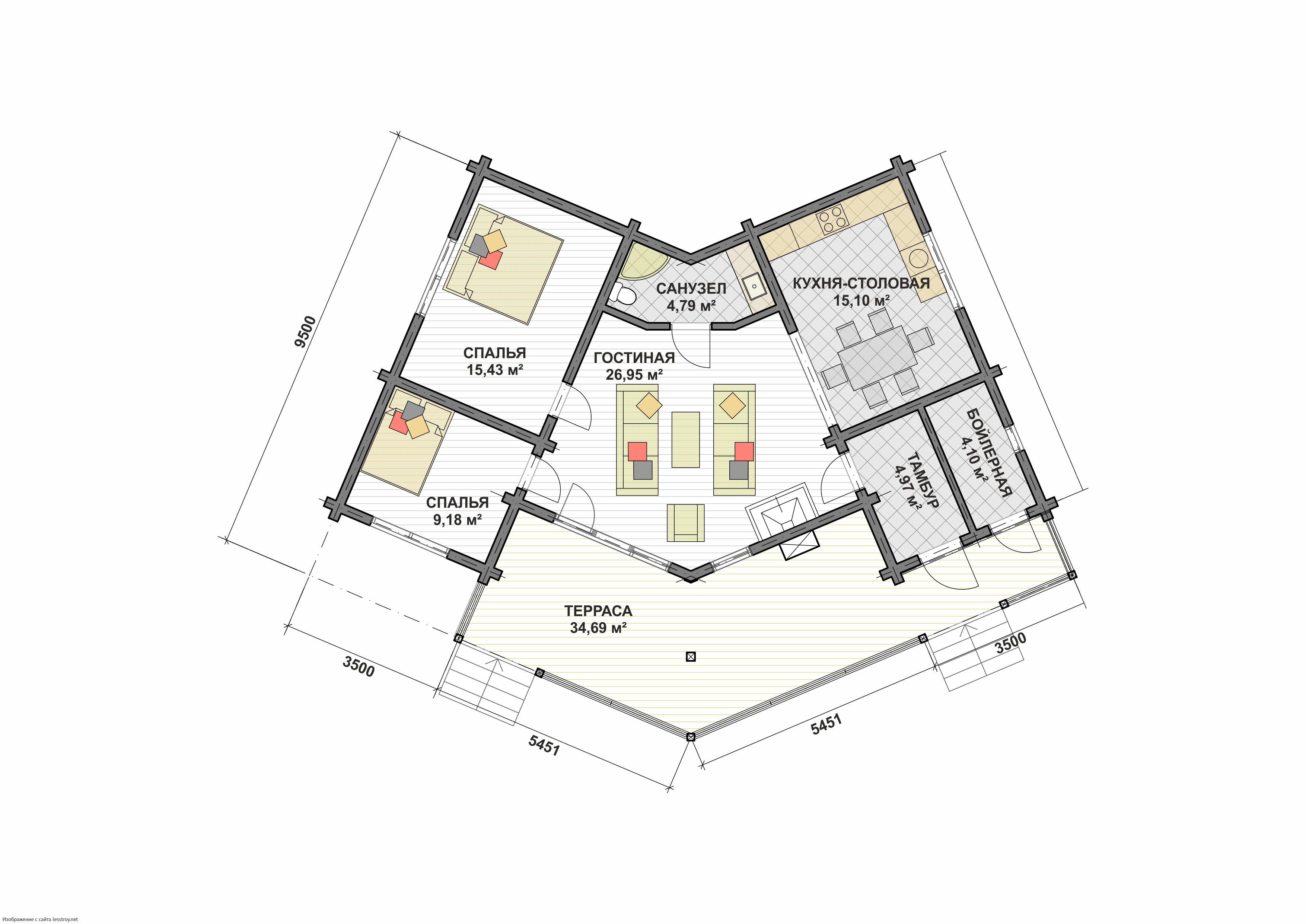 Проект одноэтажного дома Проект одноэтажного дома из клееного бруса Пятый угол -115