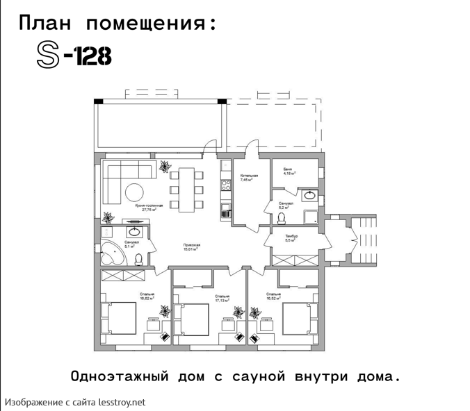Проект одноэтажного дома Проект S-128
