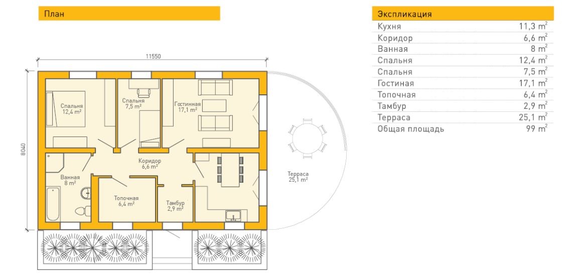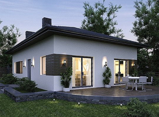 - Кровля – четырехскатная с покрытием из мягкой черепицы.