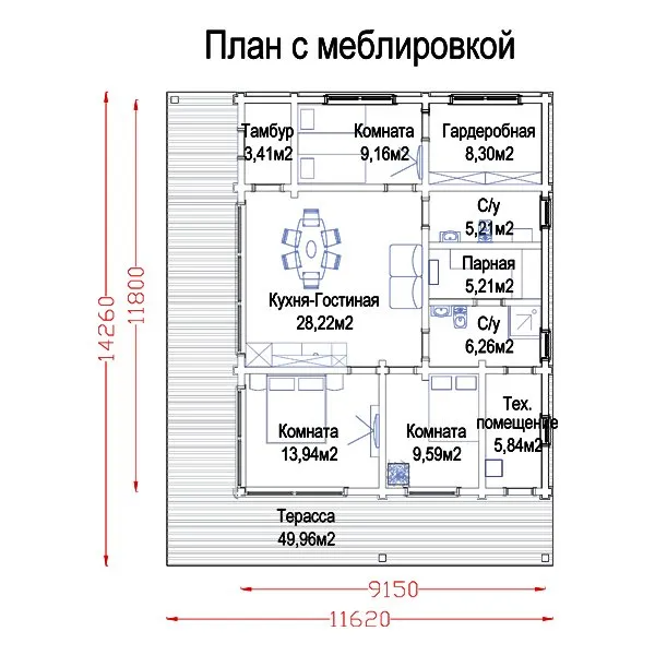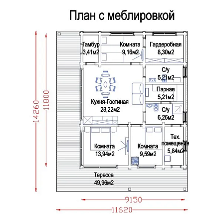Проект одноэтажного дома Одноэтажный дом из клееного бруса Кудьма-164