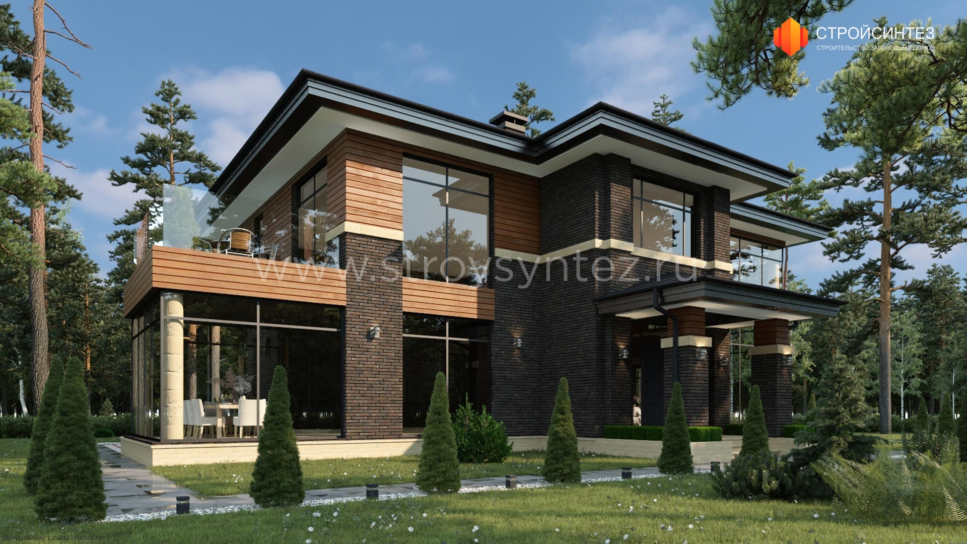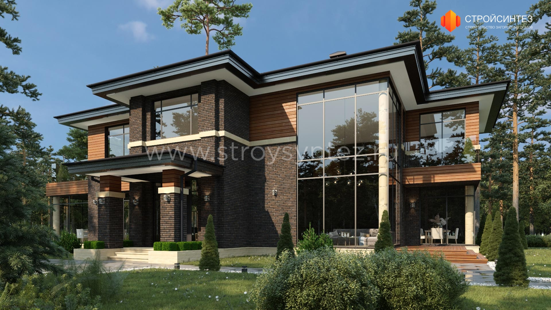 Проект двухэтажного дома Репино в стиле Райт