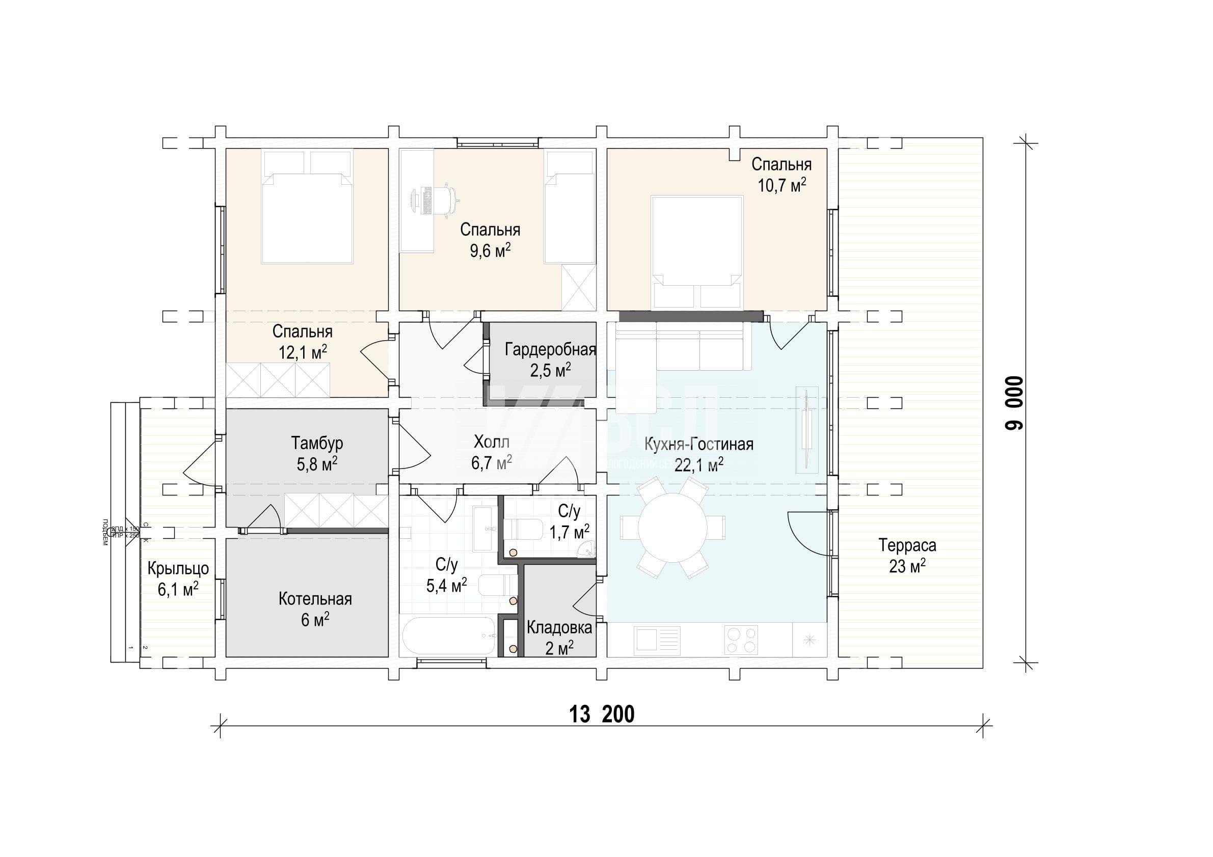 - Общая площадь: 113.7 м2