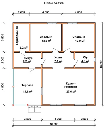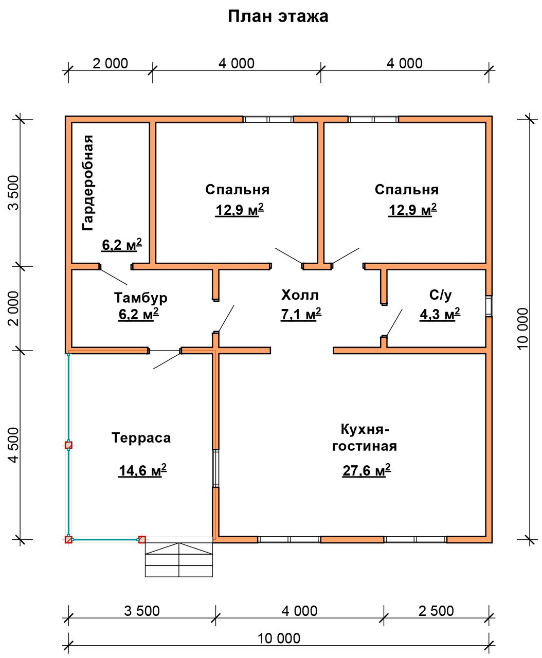 - Все перегородки 1 этаж — брус 100х150 мм.