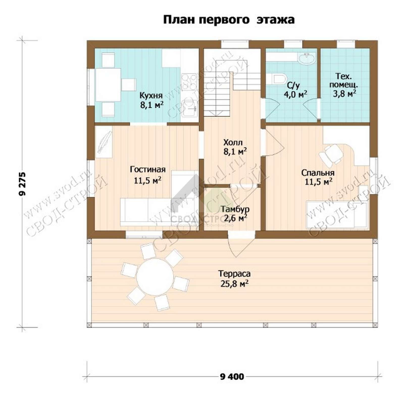 - Высота дома: 5.8 м