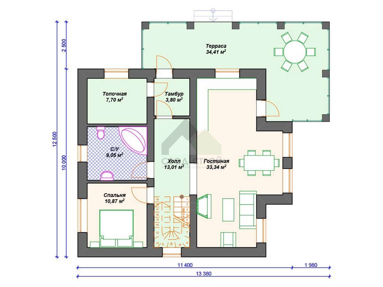 - Прокладка инженерных коммуникаций внутри дома за дополнительную плату.