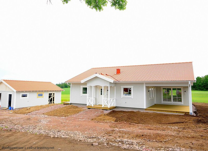 Уютный одноэтажный каркасный дом площадью 141 м² в финском стиле — это функциональность и дизайн. Три спальни и металлочерепица создают теплую атмосферу.Характеристики