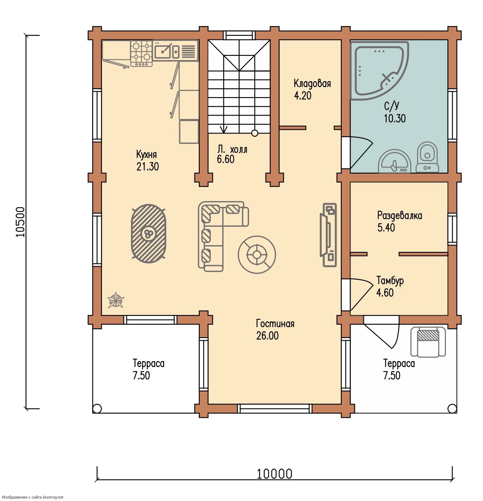 Проект двухэтажного дома Дом из профилированного бруса сечением 190*120