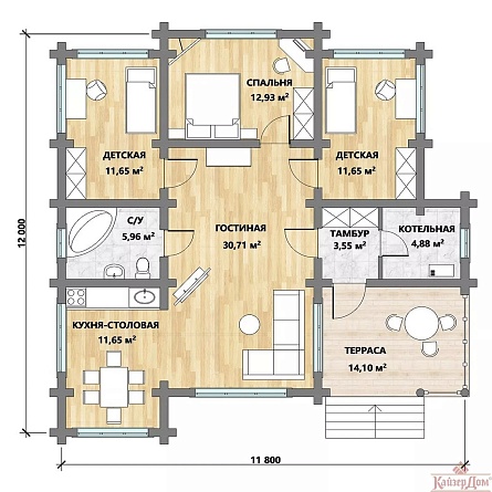 Проект одноэтажного дома Проект одноэтажного дома из клееного бруса Пятый угол -115