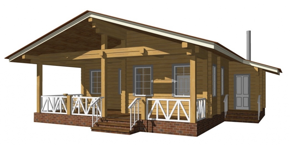 Проект одноэтажного дома Шале из профилированного бруса 8.5 x 10.25 м.