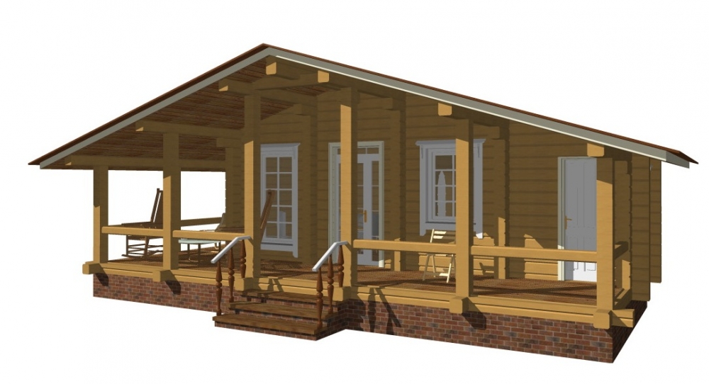 Проект одноэтажного дома Шале из профилированного бруса с террасой