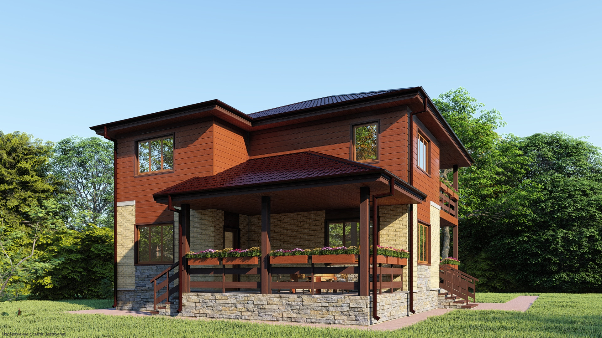 - Тип кровли: Дома с четырехскатной крышей (вальмовой)