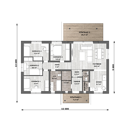 Проект одноэтажного дома Шуберт