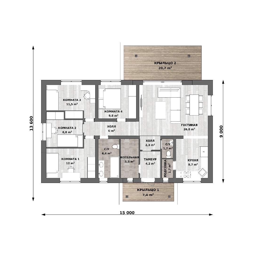 - Фундамент: Дома с плитным фундаментом