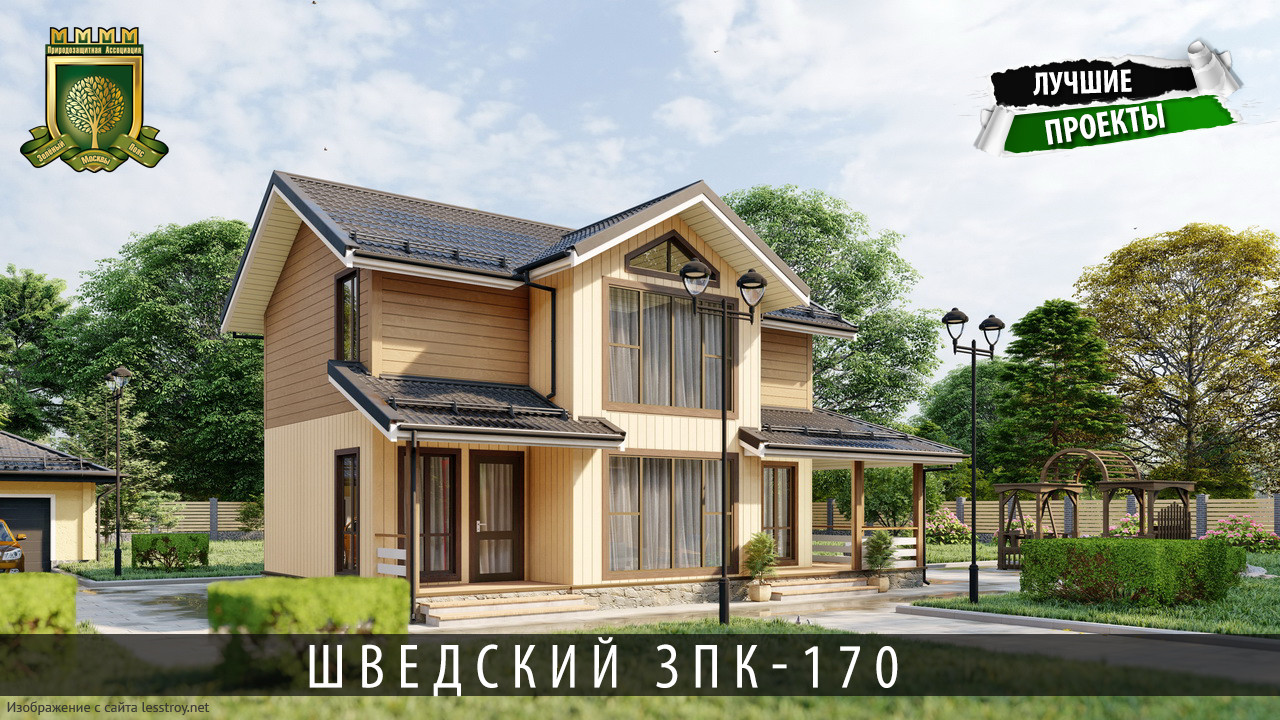 Проект двухэтажного дома Шведский ЗПК-170, под ключ, ламинат, двери Экошпон, отделка Hauberk, коммуникации, сантехника.