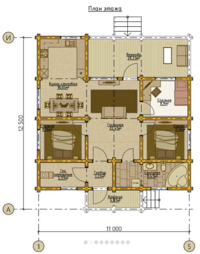 Пространство организовано с учетом потребностей современной семьи.Площадь 120 м² — подходящий вариант для молодых семей. Стены из бревна хорошо держат тепло и защищают от шума. Двухэтажная эргономичная планировка обеспечивает комфортную навигацию внутри дома. Архитектура выполнена в стиле дома в классическом стиле.Характеристики