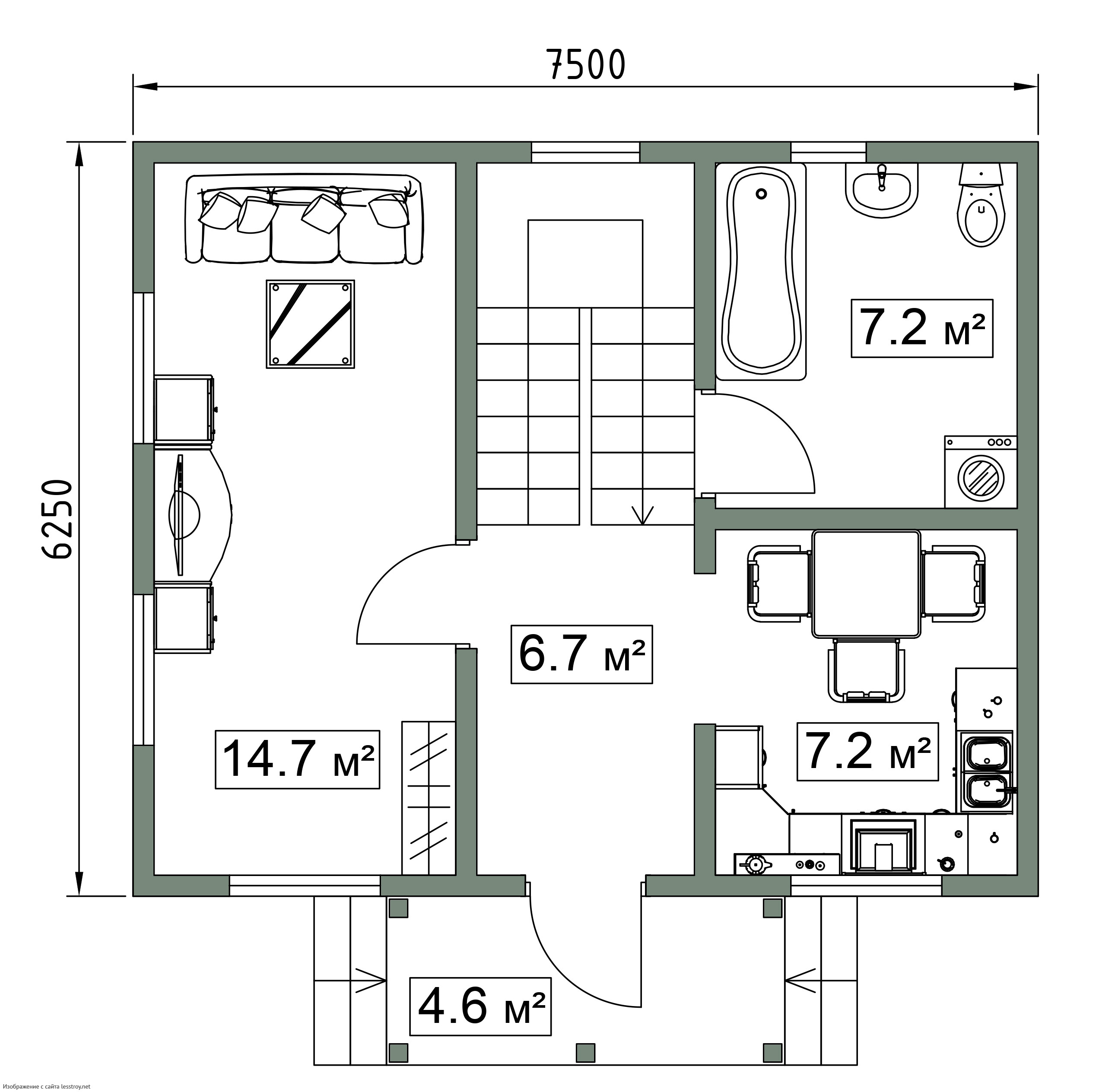 - Форма: Прямоугольные дома