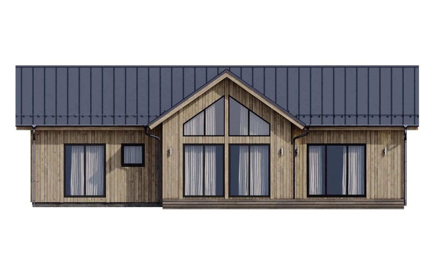 - Комплект несущих силовых элементов заводского изготовления (балки межэтажного перекрытия LVL-брус, балки и столбы из клееного бруса и/или LVL-бруса, фермы на металлозубчатых пластинах MITEK