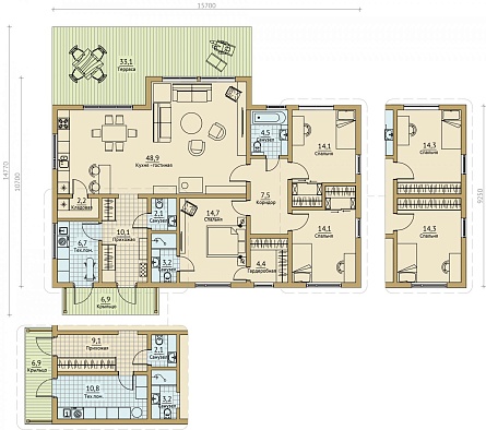 - Тип кровли: Дома с четырехскатной крышей (вальмовой)