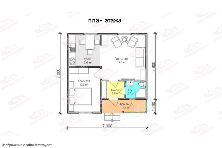В этом доме нет места хаосу — только продуманная гармония.Компактный каркасный дом площадью 44 м² — практичное решение для дачи. Все основные зоны размещены с максимальным удобством. Легкость конструкции позволяет быстро возвести дом. Небольшая терраса дополняет функциональность.Характеристики